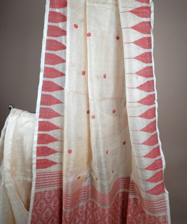 Handwoven Tussar Silk Saree With Red Moirangphee/Manipuri Border