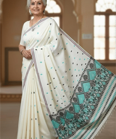 Handwoven Tussar silk Saree with traditional motifs of Assam
