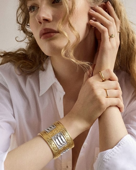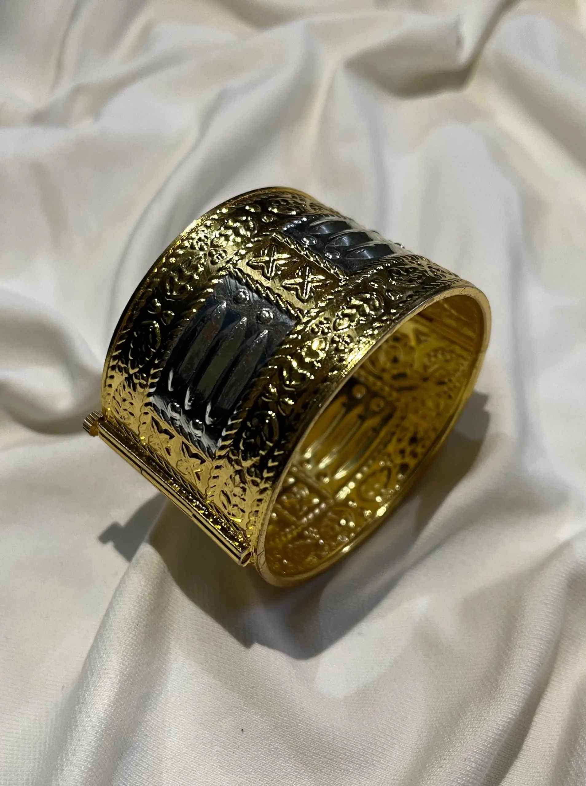 This traditional, exotic & unique Assamese cuff is a traditional bangle of the Ahom Dynasty women of Assam. Gold plated on silver and only made by skilled hands.