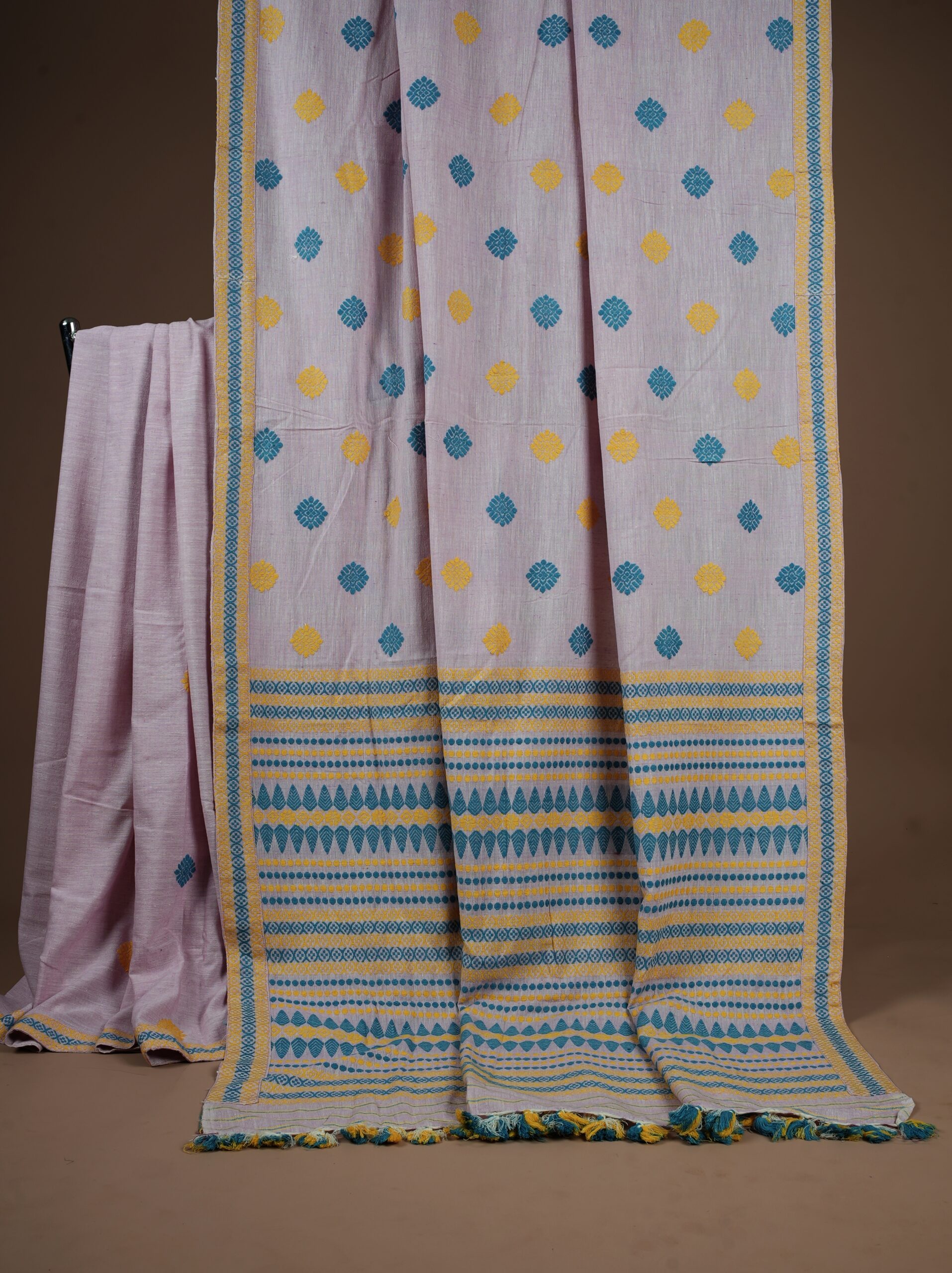 ( Shop authentic Light Pink Eri Silk Saree from Assam, handwoven with floral motifs. Made from Ahimsa/Peace Silk, cruelty-free & eco-friendly. Includes blouse piece. Perfect for weddings, festivals & sustainable fashion lovers.
